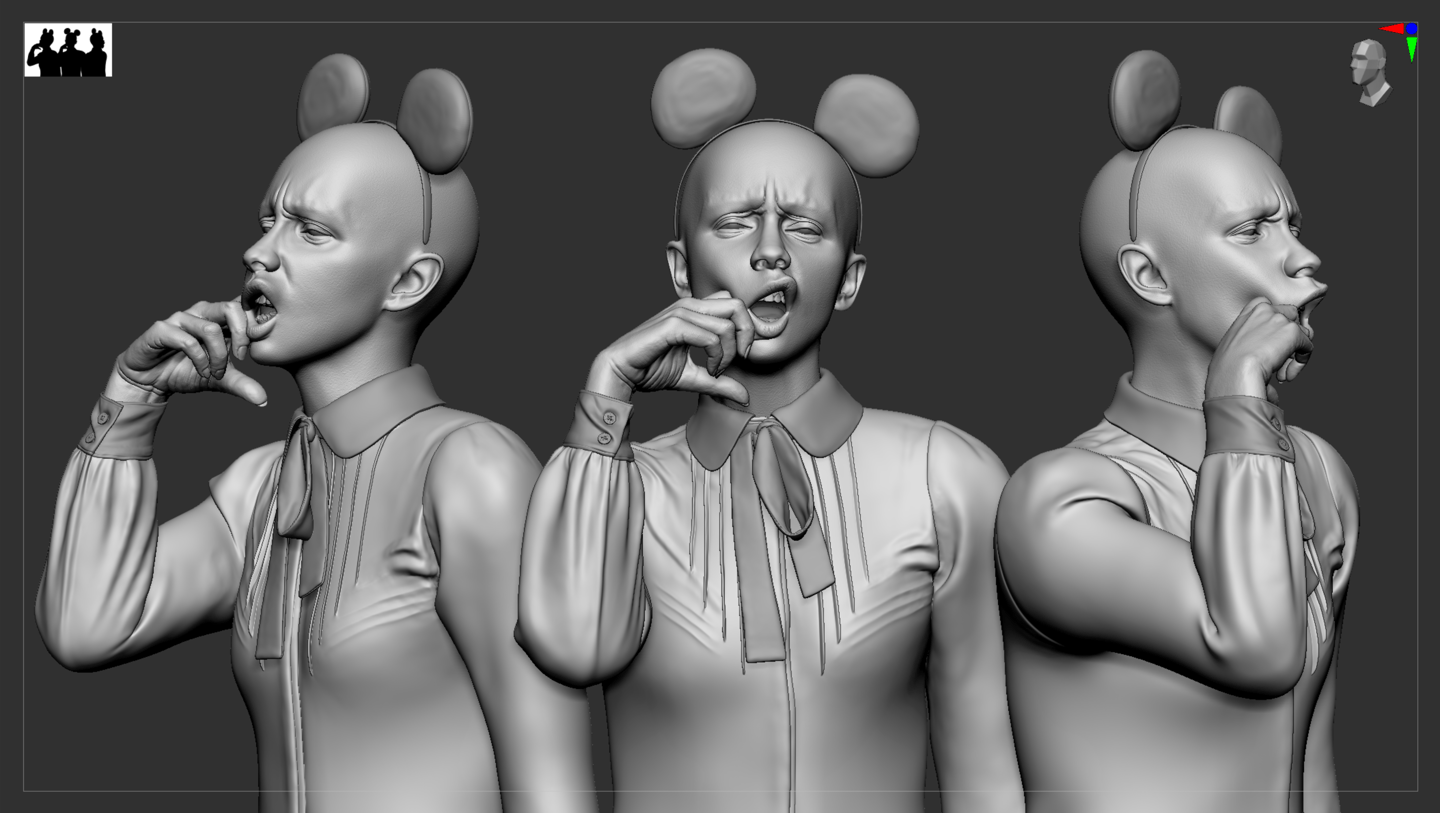 You can start a base mesh from scratch in ZBrush or purchase one online. However, if you purchase a base mesh, make sure the topology is clean. Since Mad mouse has a strong expression, it was necessary to modify the topology.