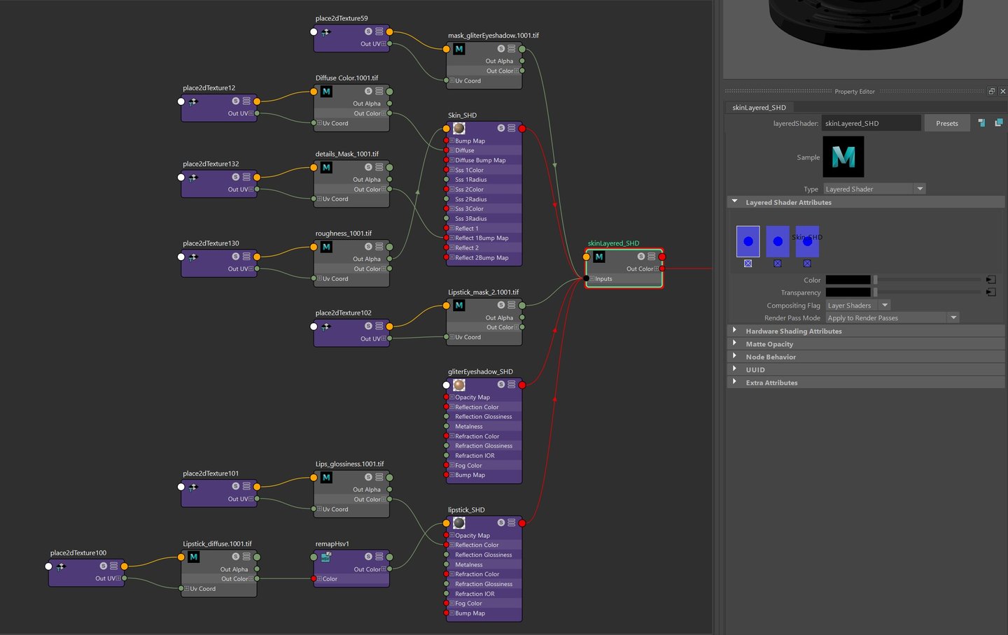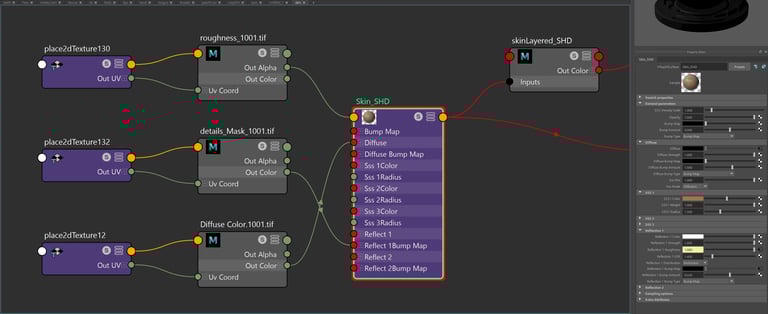 Combining shaders for the face using Layered shader node
