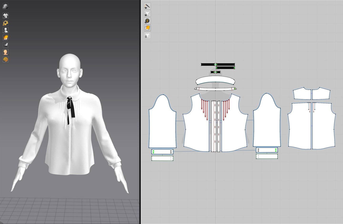 Import an A pose base mesh to Marvelous Designer as an Avatar. A good way to speed up the process of creating clothing is to use a shirt from Modular configurator. Use a base shirt and modify to fit the concept blouse.