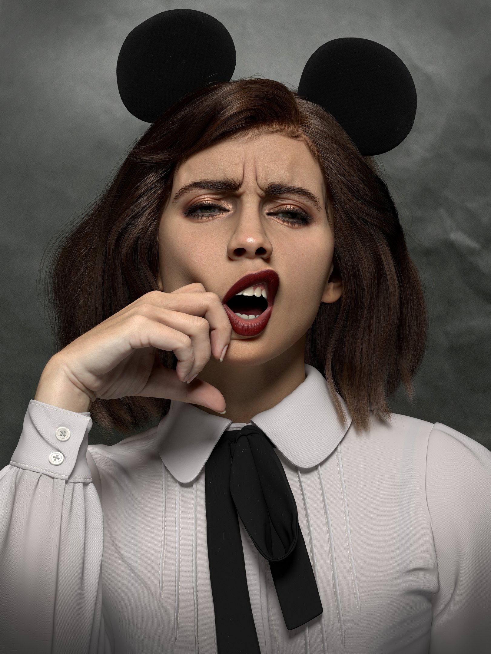 V-Ray was used to render the scene, however Arnold can be used which is free. To achieve a natural look of the skin, VrayAlSurface was used.