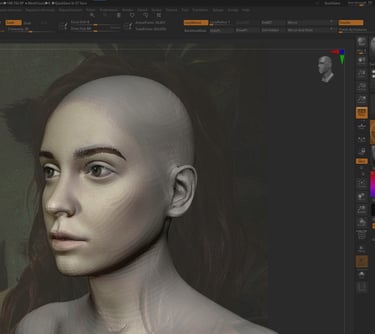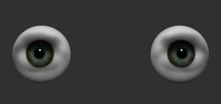 Placing the eyeballs and painting in iris colour using polypaint in ZBrush will help to tell if the face is looking the way it is supposed to.