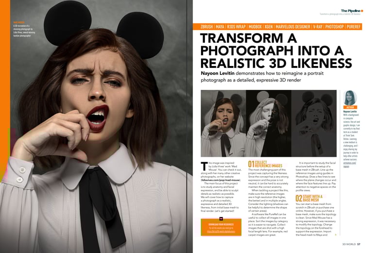 I wrote an article for 3D World Magazine, 80lv, and The Rookies about my project Mad Mouse. The article covers my process for creating a realistic 3D character from a photograph. It also explores how to sculpt lifelike details while studying anatomy and facial expressions.