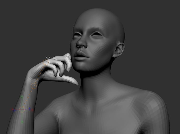 Dam standard brush is great for folds and wrinkles. The most important thing to remember while sculpting a head and hand is that the skin is quite bumpy and uneven. The skin is sitting on top of bones, muscles and fat, so try not to make the surface too smooth.