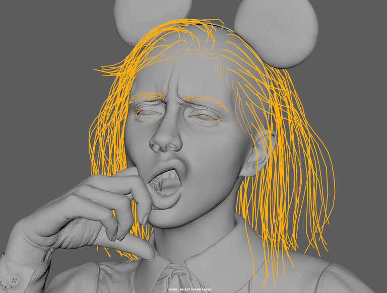 Once the rendering starts, you will need to go back and forth between ZBrush and Maya to refine details on the face and clothing. ZBrush tends to make the skin details more pronounced. However, Subsurface scattering during rendering will lose some of the details if it’s not sculpted enough in ZBrush. From this point on, you have all basic meshes and setup is done.